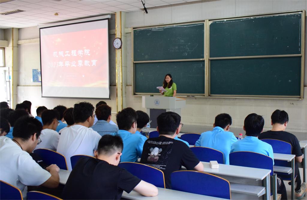 接着,团委书记宁大千分别从爱党爱国、普法安全、职业规划、心理健康、廉洁诚信、毕业政策、文明离校七个方面对毕业生进行离校教育。宁大千用生动的案例和详实的数据,深入浅出地为毕业生普及了法律常识、职业规划指导、心理健康关怀等方面的知识,为毕业生提供了有益的指导。