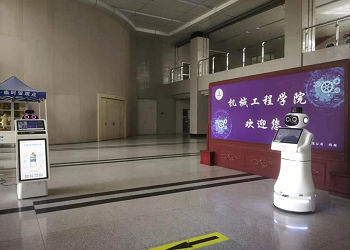 4月27日下午2点,beat365中文官方网站与深圳科卫机器人科技有限公司与机械楼开展产学研合作,在机械工程学院部署了AGV服务机器人应用示范项目,包括智能测温门岗机器人和迎宾巡更机器人。