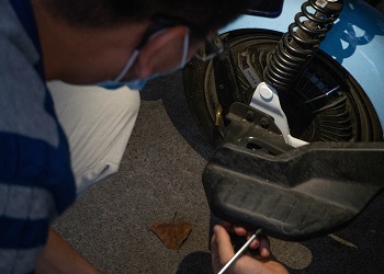 活动伊始,在负责人的指导下,队员们熟练的摆放器材,充分做好修车准备。随后便有一位同学前来维修自行车车把手,经过队员们的仔细调节,成功帮助同学解决问题。在接下来修车过程中,队员们不断针对同学们遇到的问题,一起交流讨论寻求解决办法。活动接近尾声,一位同学前来求助维修电动车车链,由于电动车挡板较紧,队员们不得不将挡板拧松才将卡住的链条拨出来,然后重新将链条装好,顺利完成维修任务。活动结束后,各位部长为队员们讲解了更多关于修车的知识,队员们积极互动,学习经验。