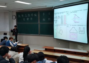 本次交流会特邀请四位优秀学子来分享期末复习经验。会上四位学长分别分享了他们复习机械制图、高等数学、线性代数与空间解析几何、大学英语四门学科时的复习方法,并向同学们讲解了实用有效的做题技巧。会议伊始,李建新通过例题介绍了作图时的注意事项以及复习的重点,他指出复习机械制图时要以题为主、注重细节。随后,李龙杰介绍了期末考题难易占比,做题的规范和注意事项,并指出复习应结合教材、例题和平时作业三部分进行。王家乐以备考思路为出发点,分享了复习时快速提分的技巧。最后,陈松细致讲解了英语试题每一部分的解题方法和技巧。