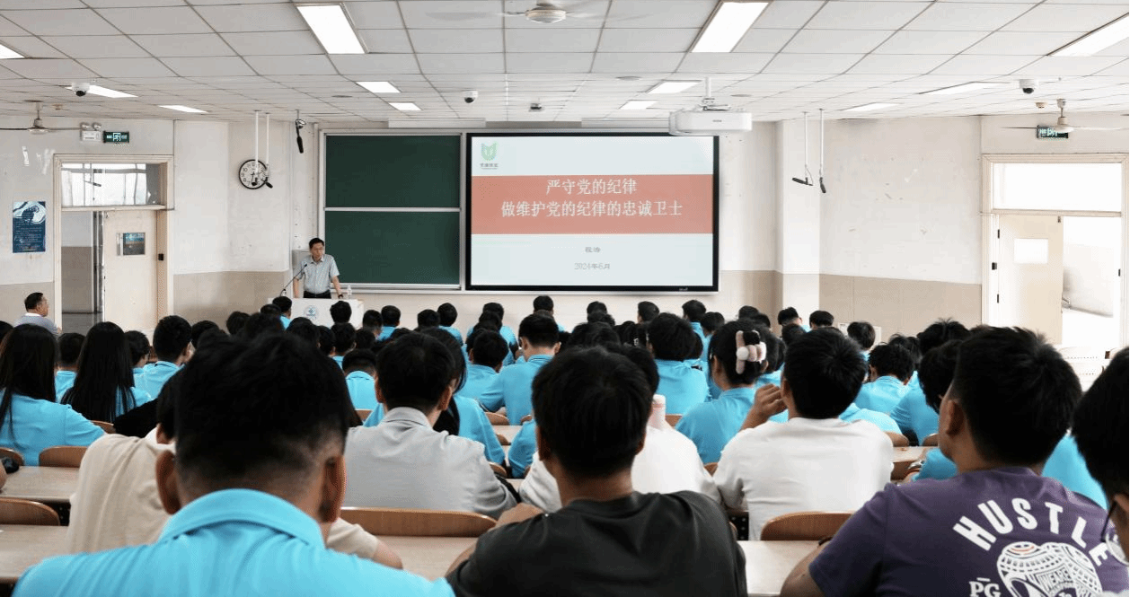 为扎实推进党纪学习教育,推动清廉校园建设,6月6日,beat365中文官方网站在11教5301开展2024届毕业生党员“青廉课堂”党纪专题党课。党课由学院党委书记程涛主讲,学院党委副书记孙成政、团委书记薛浩、辅导员朱冬青及全体毕业生党员参加。