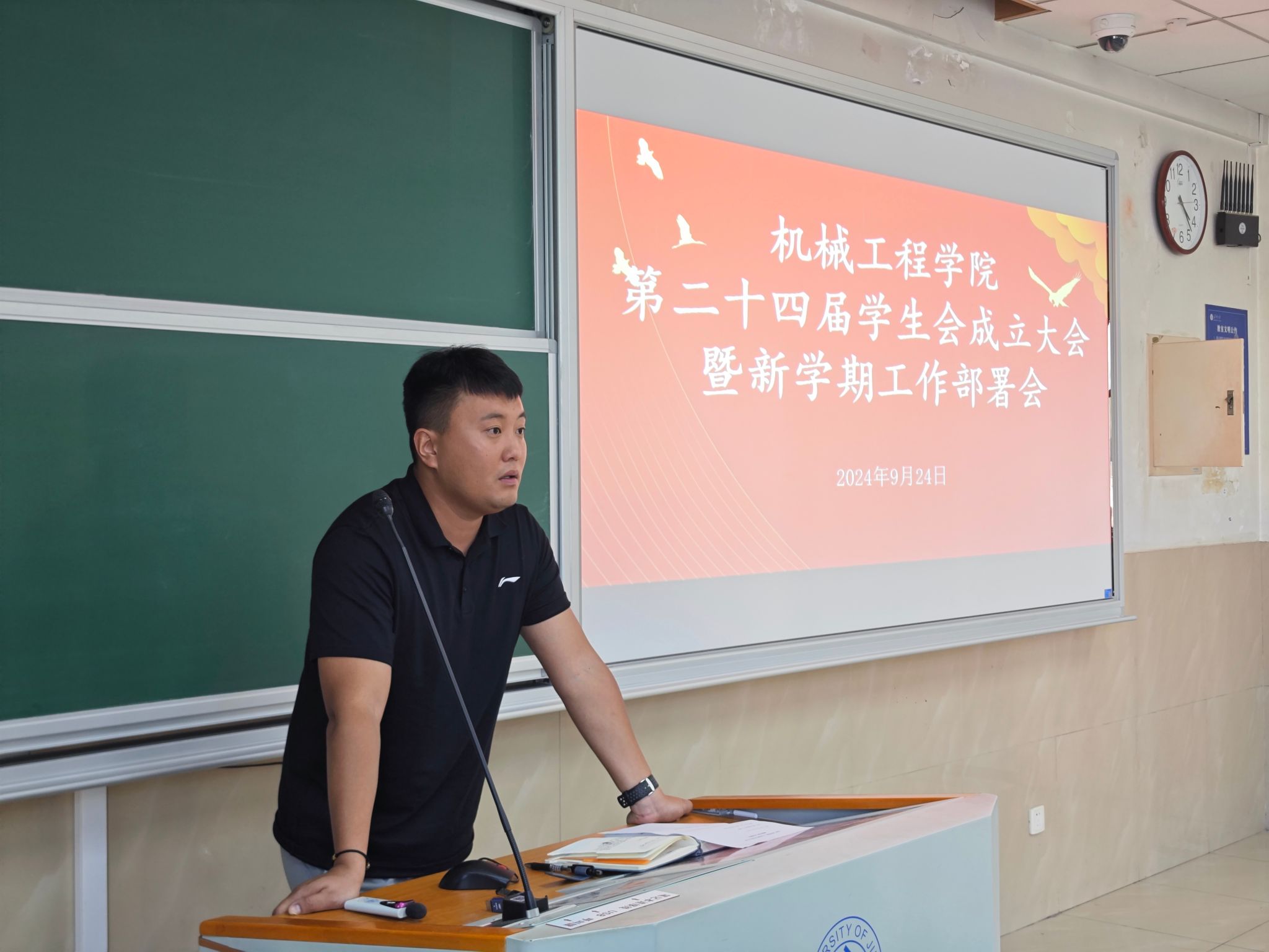 学院党委副书记孙成政在致辞中对新一届学生会的成立表示热烈祝贺。他要求,学生会干部一要明确职责定位,工作标准要高,从学生中来、到学生中去,充分发挥学生干部的模范带头作用;二要强化规范建设,工作作风要实,完善制度建设,在服务学生中提升自己,充分发挥学生干部的桥梁和纽带作用;三要对标先进勇于创新,工作效果要好,在“干中学”,在“学中干”,在服务学生中提升自己,充分发挥学生干部的先锋骨干作用。孙成政提出,希望新一届学生会成员能够传承和发扬学院的优良传统,以饱满的热情和高度的责任感,不断提高工作水平,为同学们做好服务,全方位提升自身综合素质,为学院的发展贡献自己的青春力量。