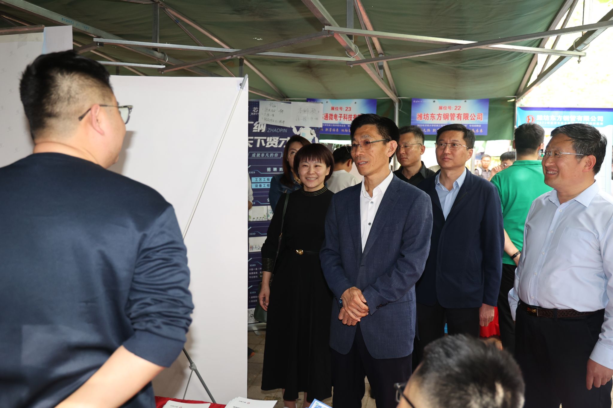 本次招聘会邀请山东矿机集团、玫德集团有限公司等80余家企业参会,提供岗位近千个。企业涵盖机械制造、车辆工程、工业自动化等多个领域,设置智能装备研发、车联网开发、生产管理等前沿岗位集群。在招聘会现场,李强副校长走访企业展位,与山东金钟科技集团、济南德沃德自动化科技公司、泰山玻璃纤维等十余家用人单位代表深入交流,详细了解行业发展趋势、岗位需求及就业创业工作建议。同时与学生面对面交流,关心毕业生的就业意愿、求职进展,鼓励他们找准定位,把握机遇,主动出击,尽早与心仪单位成功签约。