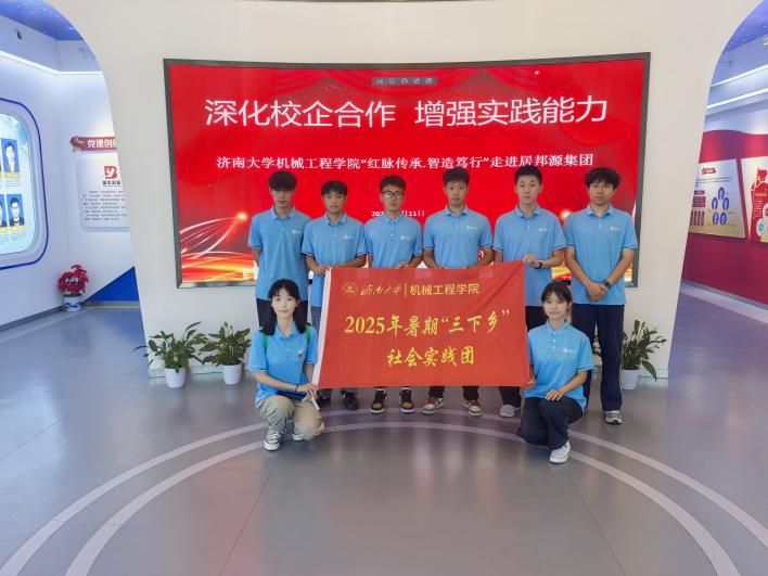 实践团队首站来到章丘居邦源集团。在企业负责人的带领下,队员们深入生产车间,实地观摩了精密零部件的加工流程,近距离接触自动化生产线与智能装备,直观感受现代机械制造的精准与高效。随后前往企业党群活动中心,通过珍贵史料、影像资料和实物展品,系统了解企业从手工小作坊到现代化制造企业的发展历程,深刻体会党建引领下企业坚守实业、科技创新的奋斗精神。