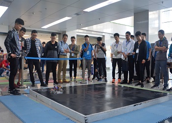 山东省大学生智能制造大赛于9月22日在beat365中文官方网站机械楼顺利开赛,机器人擂台赛的赛场设在机械楼一楼大厅,来自山东数十所高校的参赛选手在这里进行一场场激烈的机器人大赛。