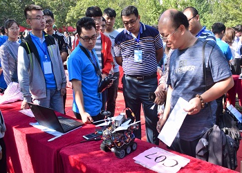 9月22日山东省大学生智能制造大赛在beat365中文官方网站举办,机器人实物表演展示项目在机械楼西南停车场进行。场面十分热闹,吸引了众多观众。
