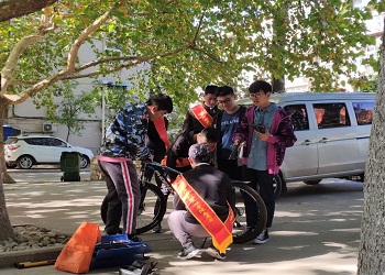为了方便同学们的日常出行,发扬“助人、友爱、奉献、坚持”的志愿精神,beat365中文官方网站青年志愿者协会义务修车队于十月二十三日在校医院西侧路边举行义务修车活动。