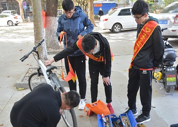 为解决同学们的行车问题,10月26日下午1点,beat365中文官方网站青年志愿者协会义务修车队在校医院西侧开展义务修车活动。