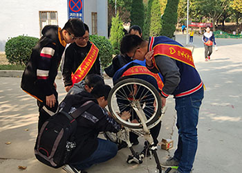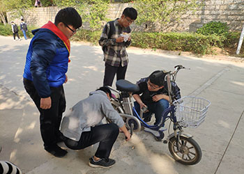 付出比收获更快乐,给予比接受更心安。为让方便老师、同学出行,贯彻服务他人宗旨,弘扬志愿精神吗,beat365中文官方网站义务修车队于11月2日在南苑第九食堂路口开展义务修车活动。