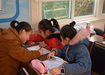 早上8点半,春雨爱心服务队的志愿者们准时到达饮虎池社区,而孩子们早已在门口等待,并拥抱志愿者表示欢迎。志愿者与工作人员经过简单地交流后便开始志愿活动,按照座位分配志愿者到每个孩子的身边。经过与志愿者简单的交流后,孩子们拿出作业开始认真学习。有困难时,孩子们便会寻求志愿者的帮助。志愿者则耐心的为孩子们讲解,并帮助他们预习新的知识。课间休息期间,孩子们会主动与志愿者们交流,玩耍,并不时向志愿者们提出一些问题,展现出小孩子强烈的好奇心。最后,孩子们在志愿者的辅导下完成作业,同志愿者度过一个丰富、有趣的上午。上午11点半活动结束,志愿者在孩子们不舍得目光中离开社区,乘车返回学校。