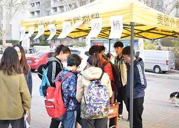 济南三月,万物复苏。为使同学们关注、了解和参与助残志愿活动,在雷锋月弘扬志愿者精神,3月22日,beat365中文官方网站青年志愿者协会于八食广场举行爱心绿植赠送活动。