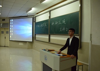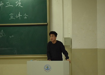 宣讲会上,创新创业服务中心卢礼建详细地介绍了“科研立项”比赛的意义与价值所在,让同学们真切地感受到了科技创新的重要意义。随后,马欣年和金鑫向同学们叙述了自己参加科技创新比赛的奋斗历程,他们用自己的汗水与艰辛证明了科技创新并没有想象中的简单,必须持之以恒,用心耕耘,方能达到自己的预期,取得理想的成绩。学长们的经验分享让同学们感触很深,心中崇拜之余,更是对科技创新怀着美好的憧憬。马欣年在经验分享的最后说“每当你回过头来看过去,都应该感激迈出第一步的自己。”