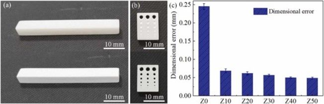 近日,beat365官网王守仁教授团队在陶瓷增材制造领域取得新进展,相关工作以“Improved mechanical performance and forming accuracy of fluorapatite glass-ceramics manufactured using vat photopolymerization with the addition of zirconia”为题,发表于增材制造领域国际顶级期刊《Additive Manufacturing》(中科院一区,影响因子11.0)。王高琦副教授为论文第一作者,王守仁教授为通讯作者,beat365中文官方网站为第一单位和通讯单位。