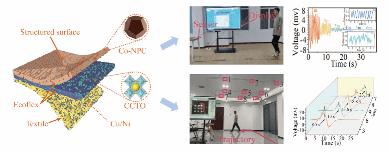 对室内人类活动的持续监测对老年人或患者的医疗保健至关重要。最近被开发的自供电非接触摩擦电纳米发电机(TENG)传感器是一种很有前途的替代非接触传感技术,其不考虑隐私问题,但检测远距离物体运动的能力仍然较差。为此,该工作综合利用纳米结构摩擦电材料、高介电常数介电层和粗糙电极表面的优势,在具有大介电常数的钛酸铜钙/Ecoflex纳米复合材料层上构建了具有微结构正方形循环表面的摩擦电钴纳米多孔碳/Ecoflex复合材料层,开发了一种超远距离检测的单电极模式非接触TENG传感器。