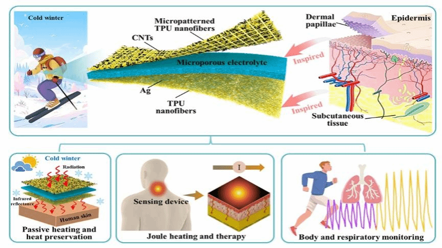 3. Natural Human Skin-Inspired Wearable and Breathable Nanofiber-Based Sensors with Excellent Thermal Management Functionality(Adanced Fiber Materials,中科院一区,影响因子17.2)