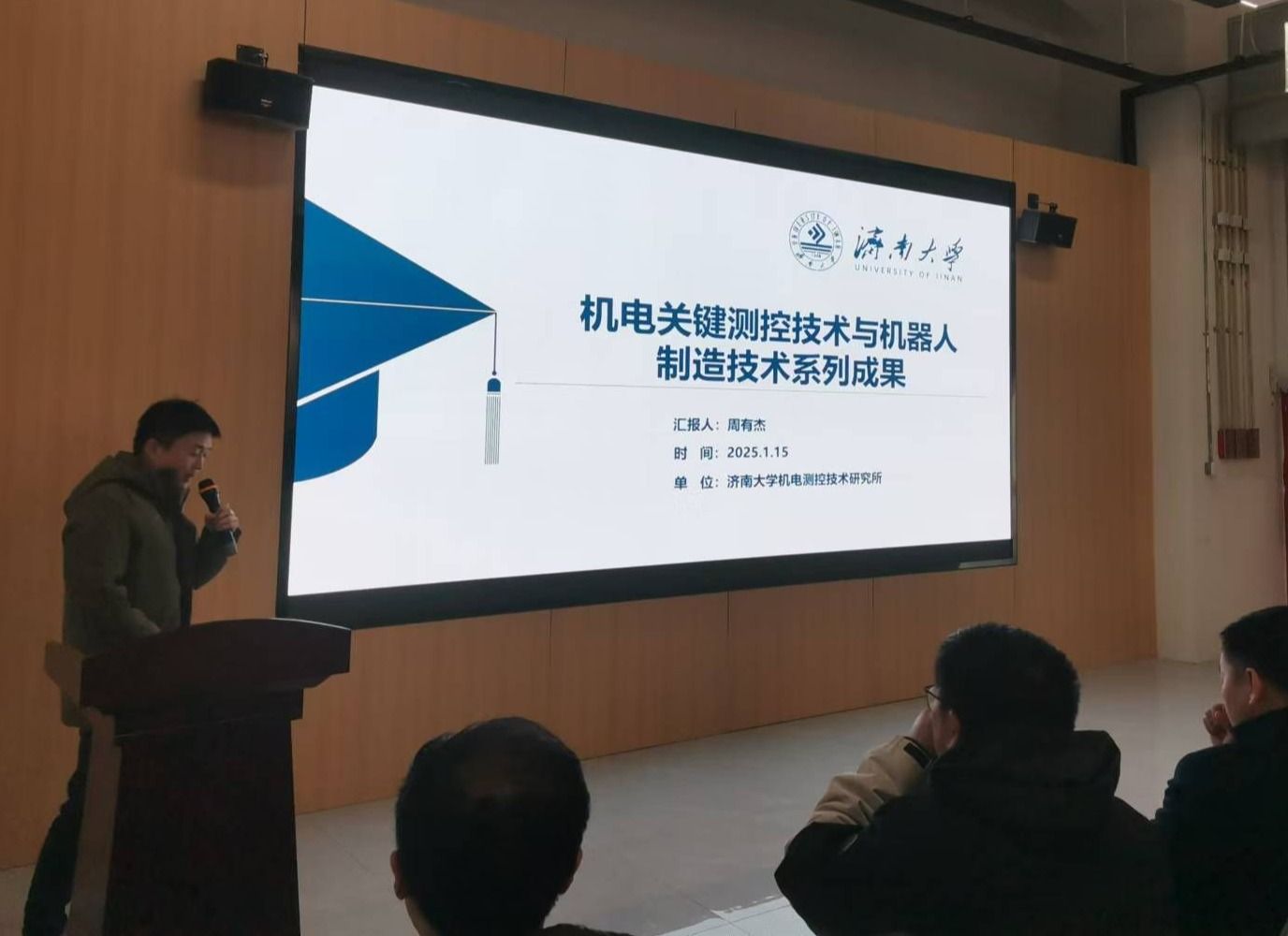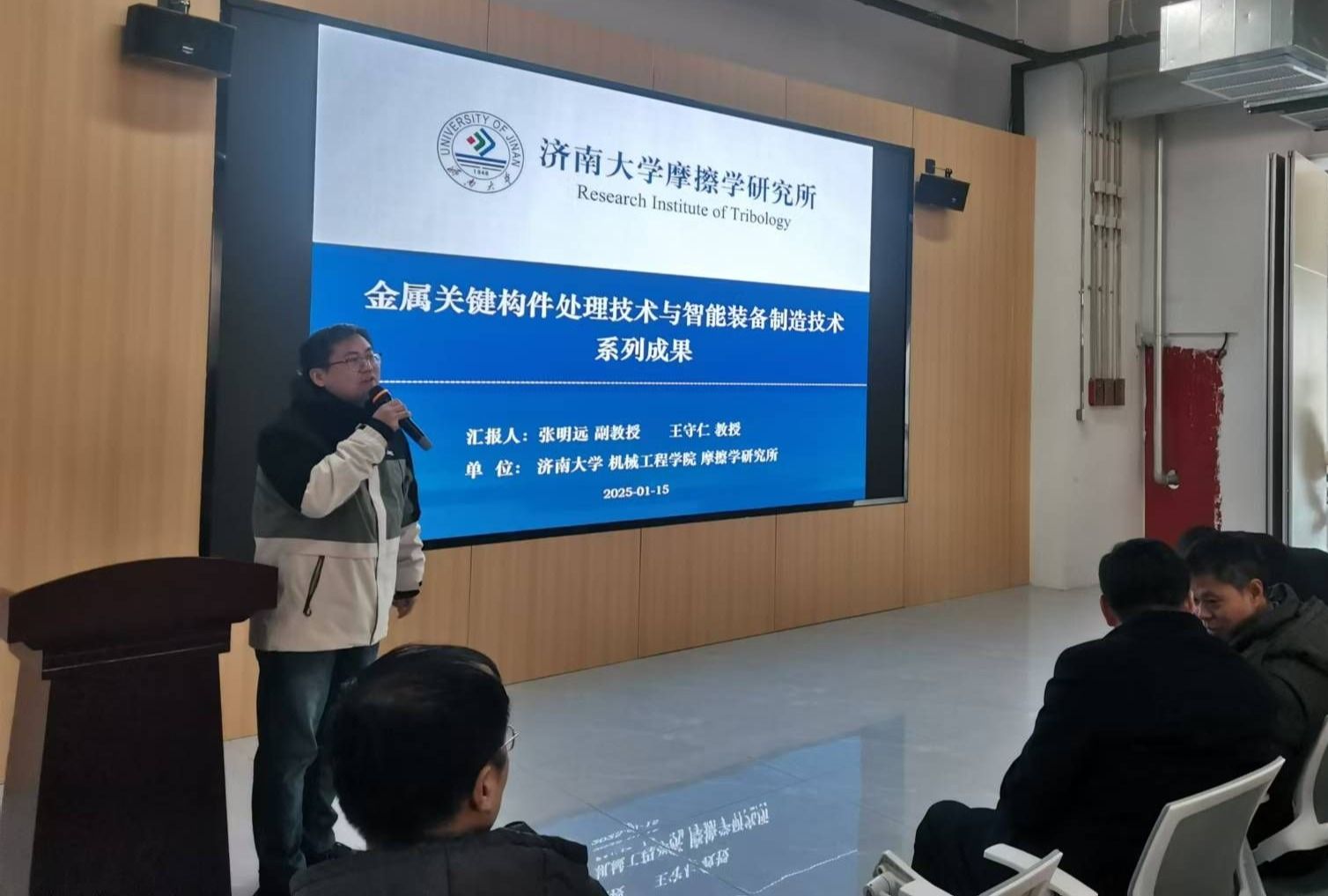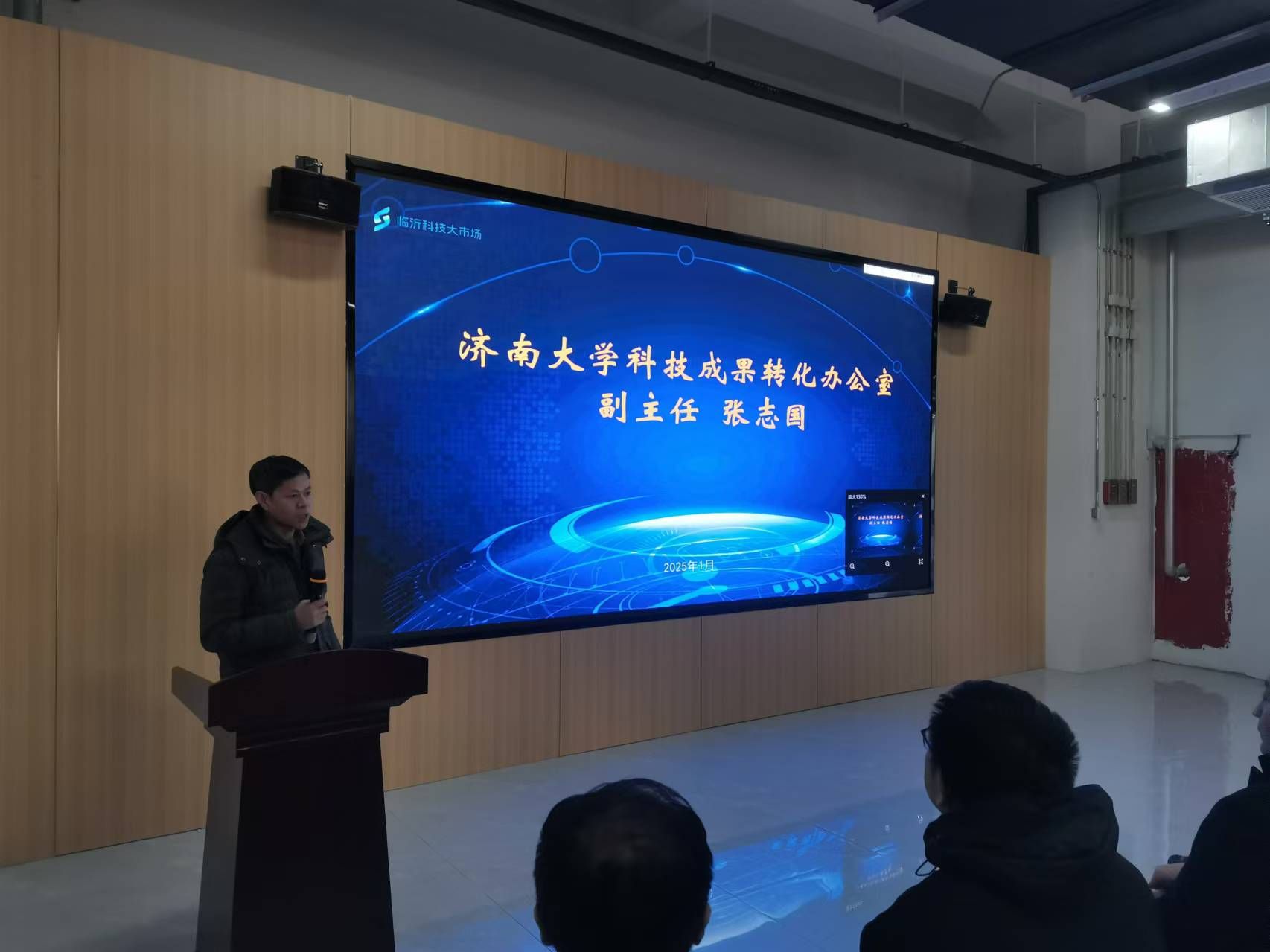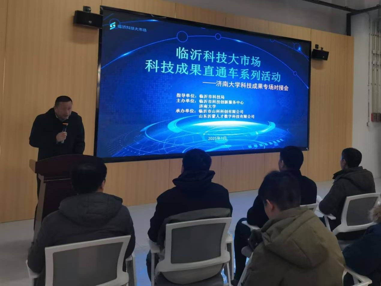 2025年1月15日,beat365官网参加了临沂科技大市场成果对接直通车系列活动——beat365中文官方网站科技成果专场对接会。市科技创新服务中心主任殷洪涛,beat365中文官方网站科技成果转化办公室副主任张志国,beat365中文官方网站副院长张辉,山东沂蒙人才数字科技有限公司董事长田明宝、临沂市山科科创有限公司总经理邵青峰出席,县区科技局有关同志,市内机械加工、智能制造等领域重点企业代表、技术经纪人等共70余人参加。