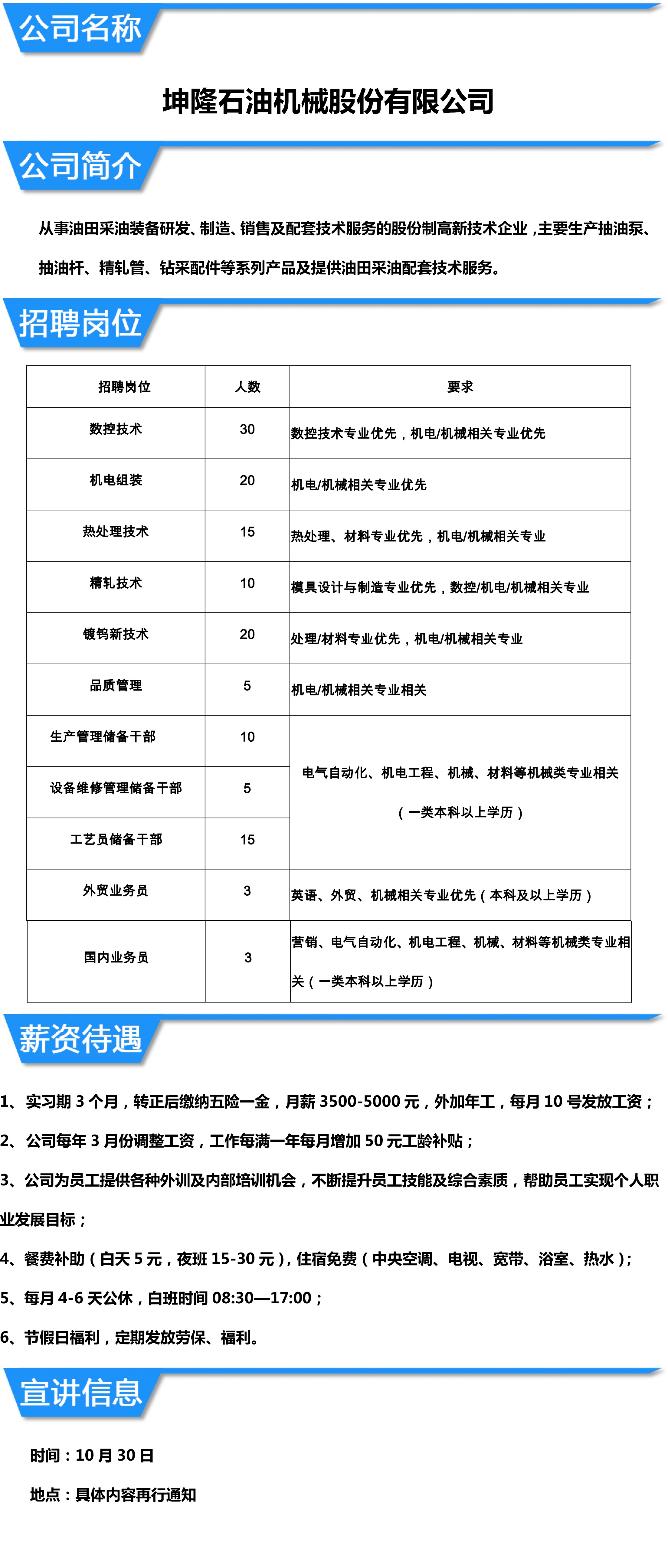 山东寿光市坤隆石油机械股份有限公司招聘简章