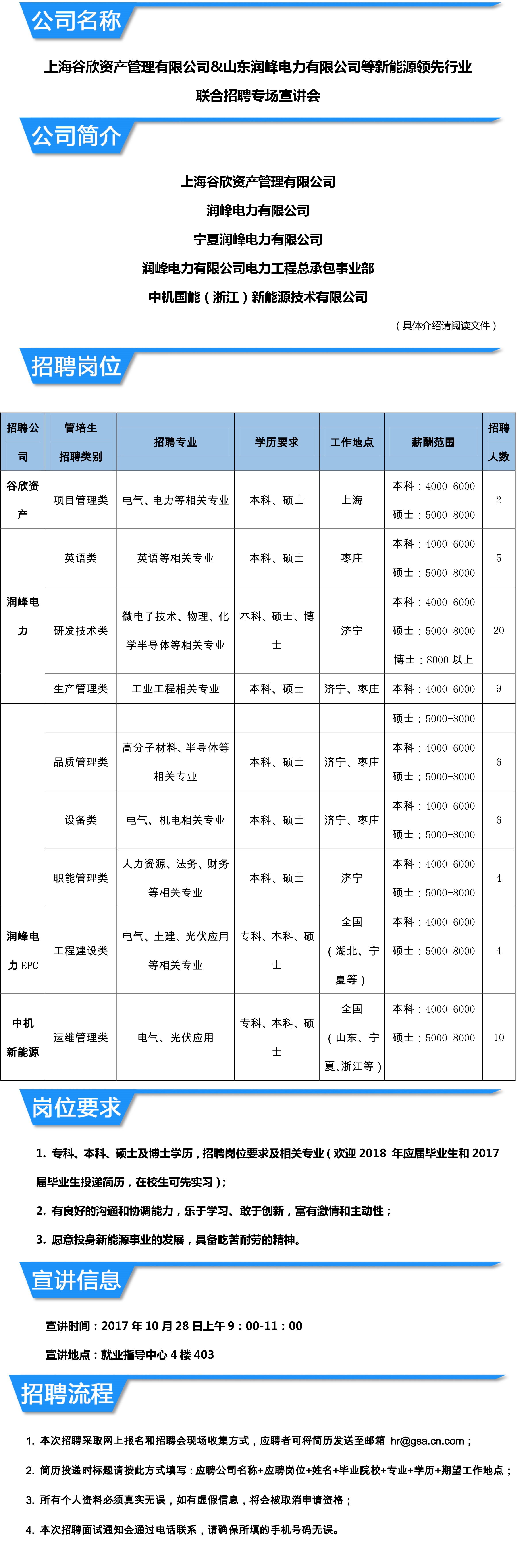 上海谷欣资产管理有限公司&山东润峰电力有限公司招聘专场宣讲会